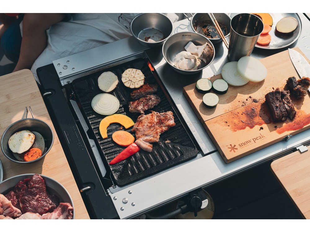 - ・鉄板調理 焼肉や野菜、シーフードの調理に特化した鉄板調理のバーナーが「雪峰苑」。余分な脂がグリドル中央の穴から水皿に落ち、ヘルシーな焼肉を楽しめます。