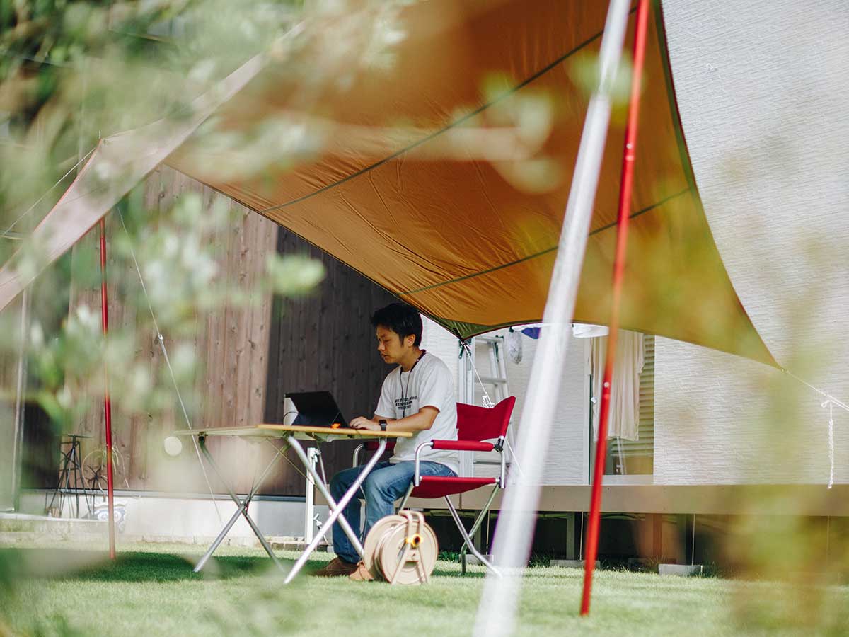 スノーピークのテーブル&チェアは、リモートワークでも重宝します。